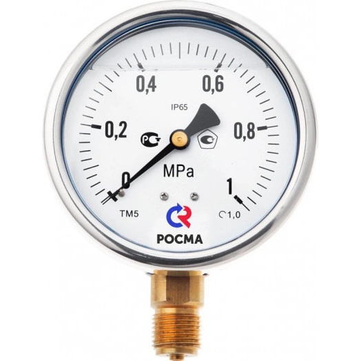 Промышленный виброустойчивый манометр выполнен в корпусе из нержавеющей стали. Применяется для измерения давления неагрессивных жидких и газообразных, не вязких и не кристаллизующихся измеряемых сред с температурой до 150 градусов. Этот тип манометра может использоваться в условиях повышенной вибрации и при измерении переменного давления. Повышенная устойчивость к воздействию окружающей среды — степень защиты приборы IP65. Температура окружающей среды при эксплуатации манометров с заполнением глицерином от -20 до +60градусов, силиконом — от -60 до +60градусов. Область применения: теплоснабжение, водоснабжение, горнодобывающая промышленность, энергетика, машиностроение.