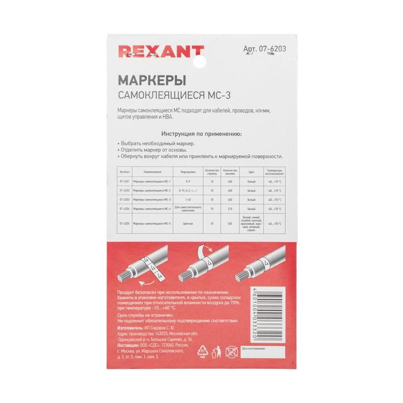 Полное описание: Маркер самоклеящийся от 1 до 45 (10 страниц) Rexant 07-6203