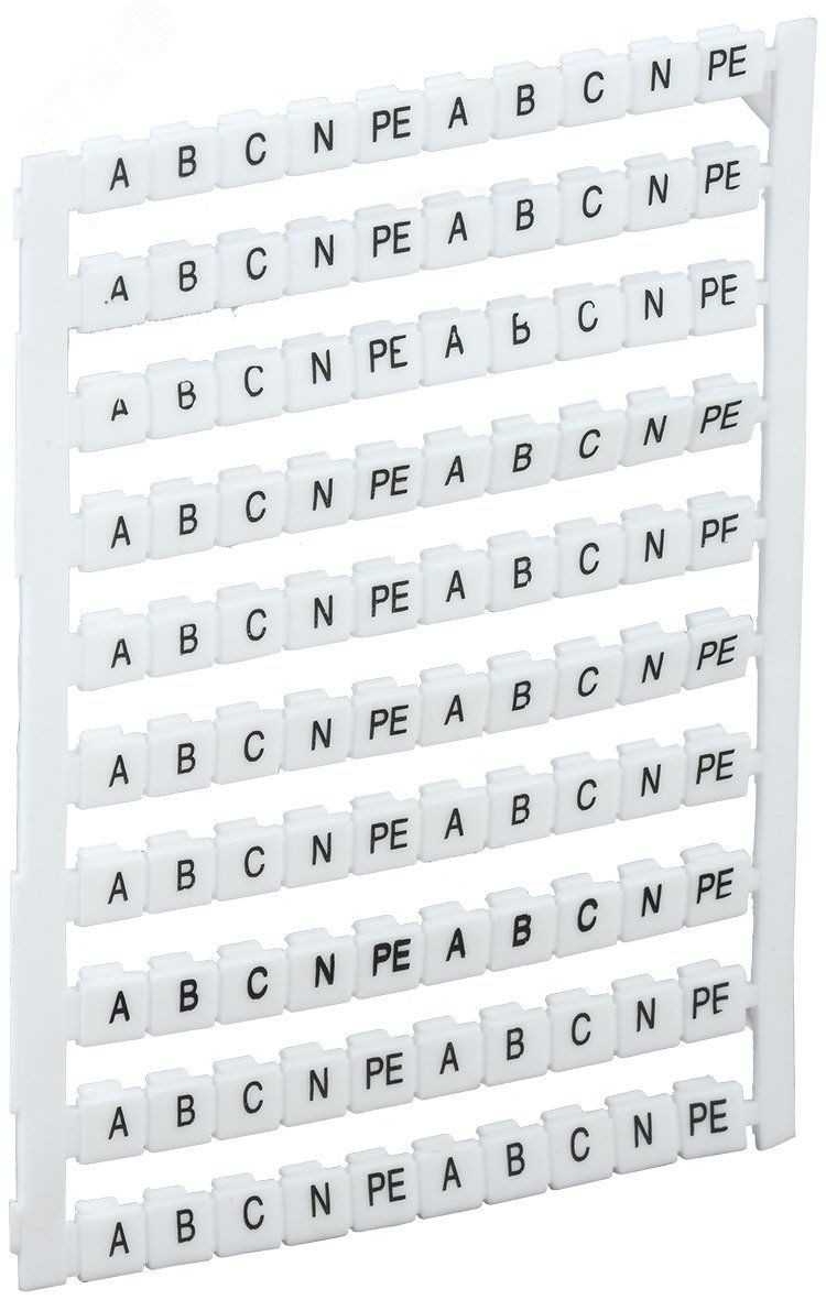 Маркировочные пластины (маркеры) используются для маркировки рядов клеммных сборок винтового типа (клеммы КВИ) в системах распределения.Устанавливаются в соответствующие пазы клеммы. Выполнены в виде пластин с десятью маркировочными площадками. Каждая площадка может отсоединяться друг от друга.На маркеры также может наноситься обозначение, например, нумерация №№ 1-10 или символы 'A, B, C, N, PE'.Изготавливаются из пластика.