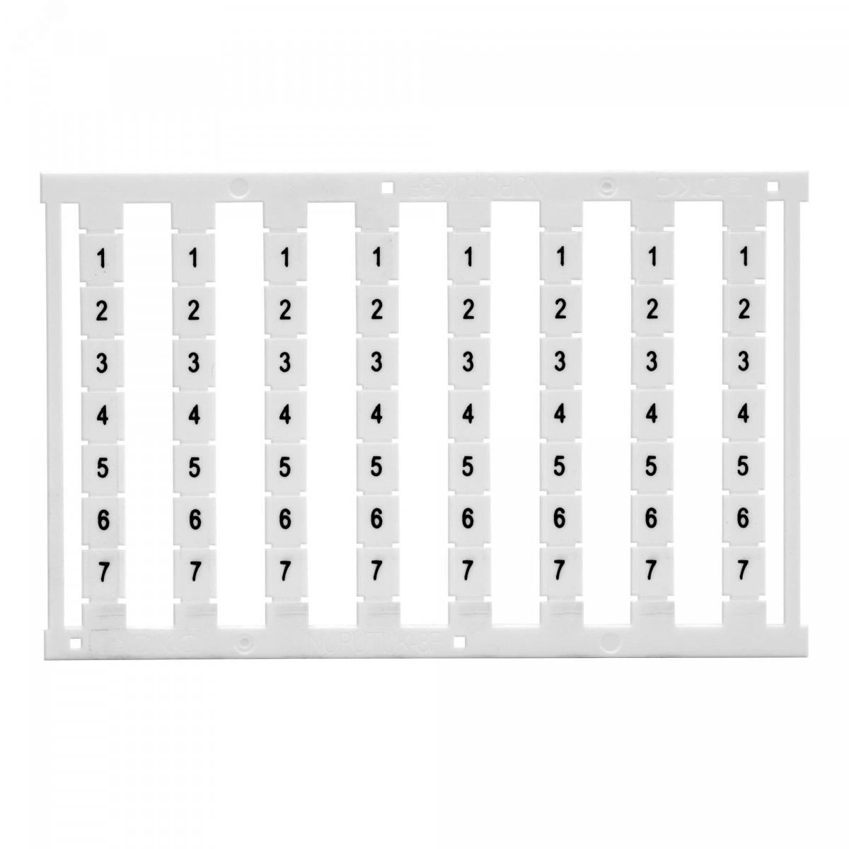 Узкая маркировка для боковой маркировки клемм Push-in (кроме многоуровневых). Ширина 6 мм, белая с черной печатью L1, L2, L3, N, PE, вертикальная ориентация, 1 шт. - карта из 80 маркеров.