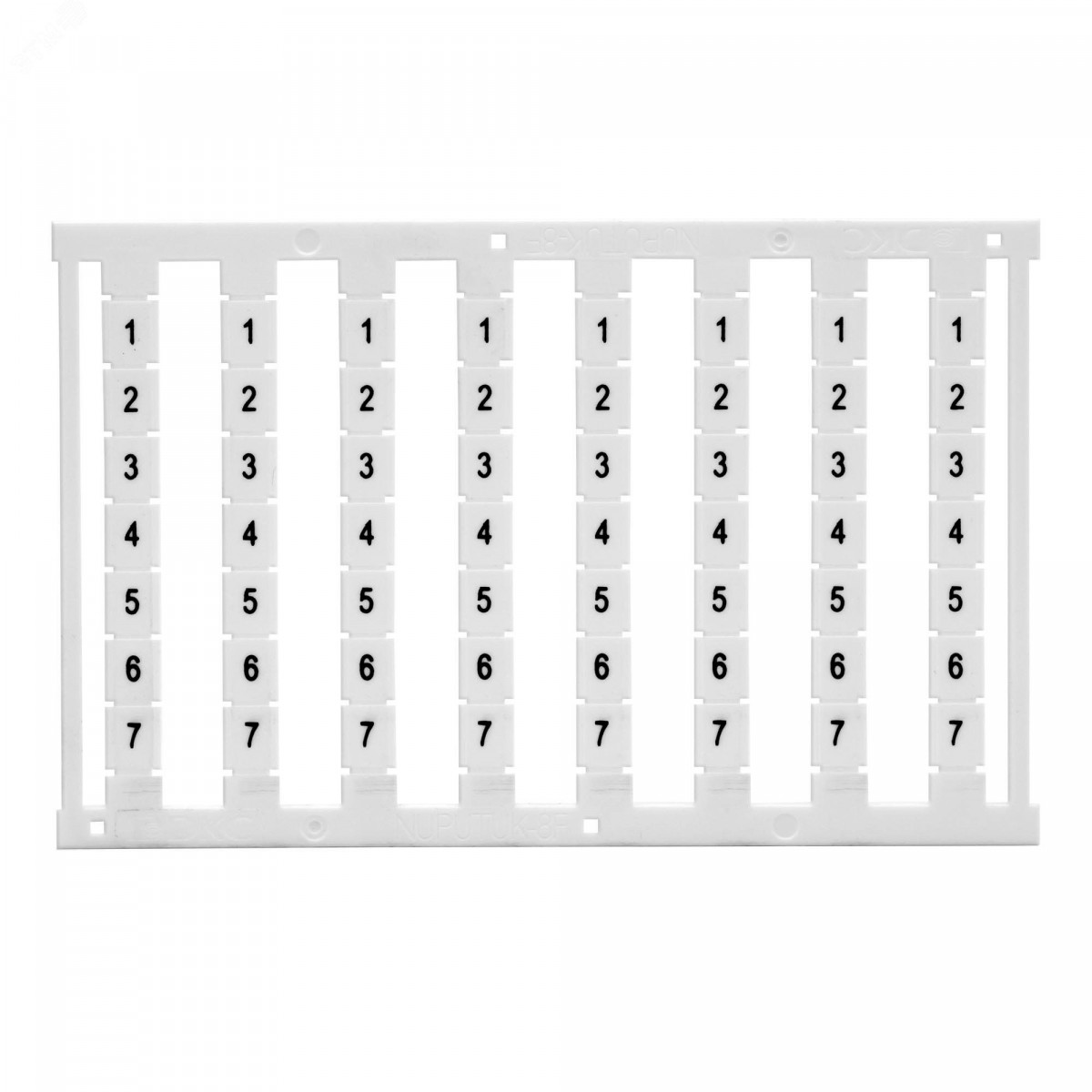 Узкая маркировка для боковой маркировки клемм Push-in (кроме многоуровневых). Ширина 8 мм, белая с черной печатью от 43 до 49, горизонтальная ориентация, 1 шт. - карта из 56 маркеров.