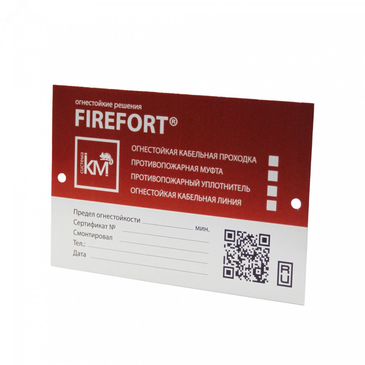 Для самостоятельного нанесения данных или характеристик о продуктах огнестойких решений FIREFORT ТМ СИСТЕМА КМ используется маркировочная табличка. Содержит специальные поля для фиксации необходимых данных, которые наносятся с помощью водо- и светостойкого фломастера. Табличка позволяет получать исчерпывающую информацию о пределе огнестойкости и дате установки противопожарного изделия, а также контакты лица, производившего установку. Выполнена из анодированного алюминия, что придаёт изделию легкость и гибкость. Устойчива к воздействию агрессивных сред: ГСМ, растворителей, UV - лучей, высоких и низких температур. Лёгкая фиксация маркировочной таблички происходит при помощи пары крепежных элементов. Изделие отличатся повышенной износостойкостью и презентабельным внешним видом.