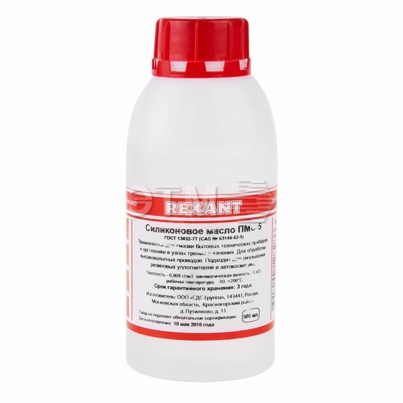 ПолиМетилСилоксановая жидкость ПМС-5 (ГОСТ 13032-77) REXANT — бесцветная прозрачная химически инертная и коррозионностойкая силиконовая жидкость без запаха. В отличие от минеральных или синтетических масел, данная жидкость обладает превосходными электроизоляционными, антиадгезионными и пеногасящими свойствами.
