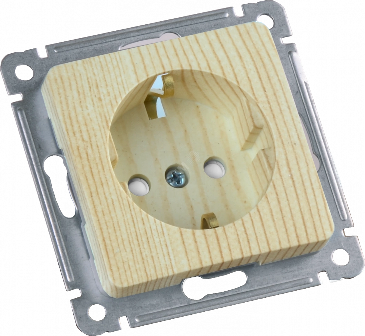 MASTER Розетка одноместная с заземляющим контактом, со шторками, скрытой установки, в рамку, сосна