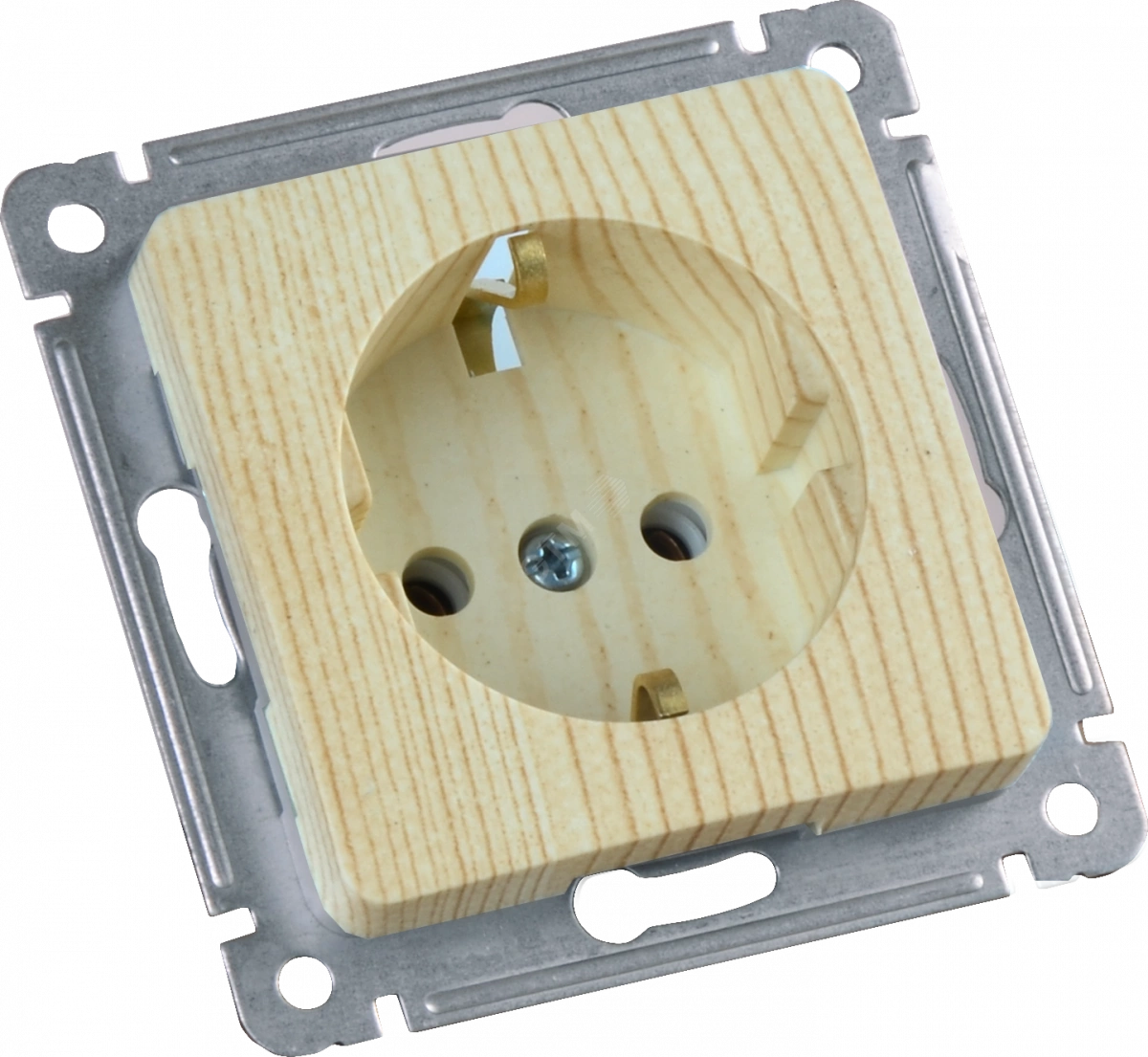 MASTER Розетка одноместная с заземляющим контактом, скрытой установки, в рамку, сосна