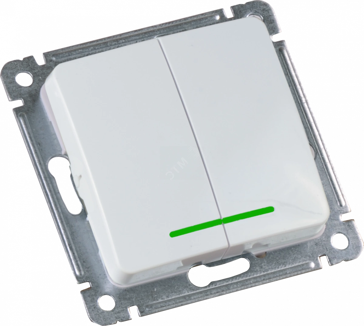 MASTER Выключатель двухклавишный с индикацией, скрытой установки, в рамку, белый