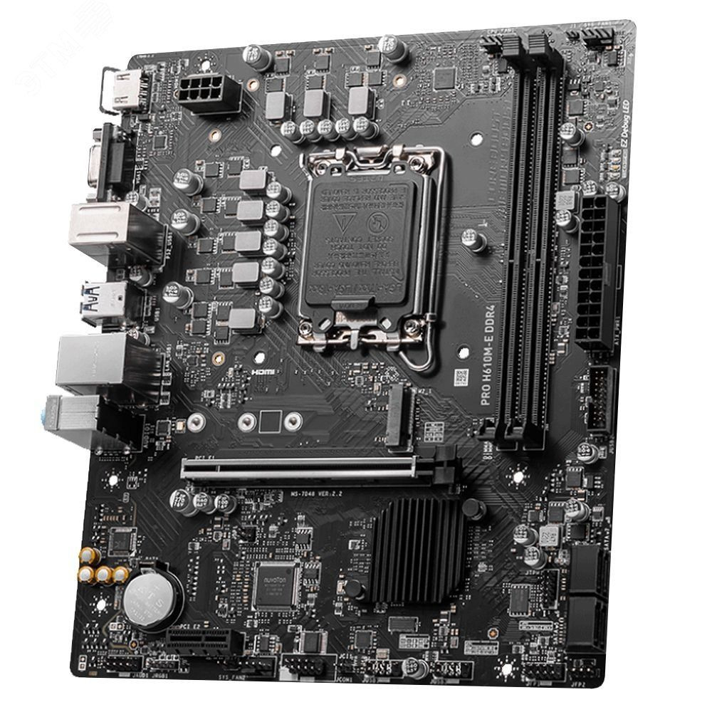 Материнская плата MSI PRO H610M-E DDR4 - это надёжное и доступное решение для создания компьютера. Она базируется на современном чипсете Intel H610 и поддерживает процессоры с разъёмом LGA1700, включая новейшие модели Intel Core 12-го поколения. Плата имеет 2 слота DDR4 для установки до 64 ГБ оперативной памяти, 1 слот PCI-E 16x для подключения дискретной видеокарты, 1 слот PCI-E 1x, 4 разъёма SATA III для накопителей и 1 слот M.2 для высокоскоростного SSD. Обширный набор интерфейсов на задней панели включает сетевой гигабитный разъём LAN, 4 порта USB 2.0, 2 порта USB 3.0 и видеовыходы HDMI и VGA. Плата выполнена в компактном форм-факторе Micro-ATX и обеспечивает современный набор интерфейсов и поддержку актуальных технологий, включая PCI-E 4.0.