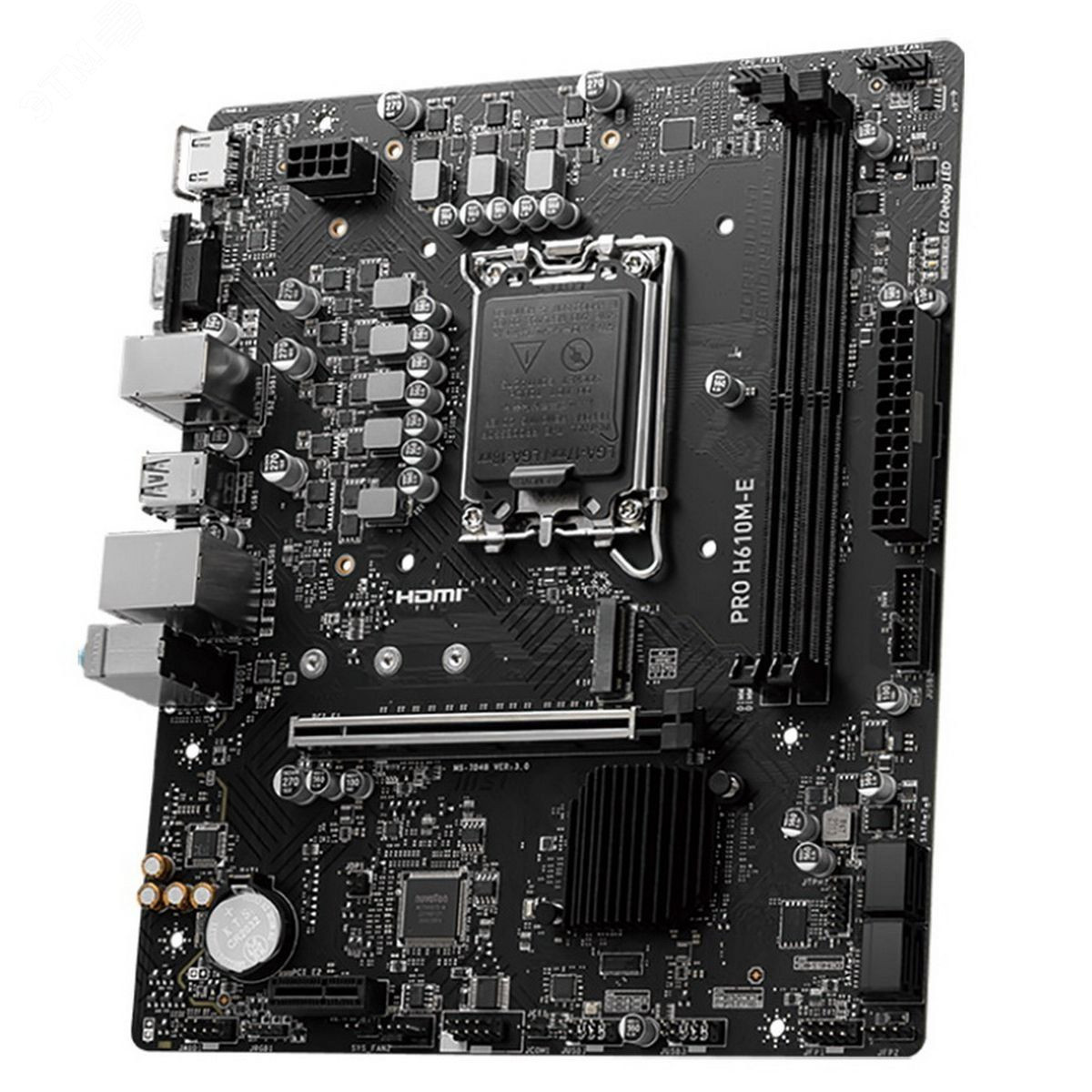 Материнская плата MSI PRO H610M-E - это надёжное и доступное решение для создания бюджетного компьютера. Она поддерживает процессоры Intel Core 12-го поколения и оперативную память DDR5. Плата имеет два слота для памяти, которые поддерживают максимальный объём до 96 ГБ. MSI PRO H610M-E оснащена двумя слотами PCI-E, включая один слот PCI-E x16 и один слот PCI-E x1. Также имеется четыре порта SATA для подключения традиционных жёстких дисков и SSD. Плата имеет компактный размер (244 x 200 мм) и форм-фактор microATX, что делает её идеальным выбором для небольших корпусов.
