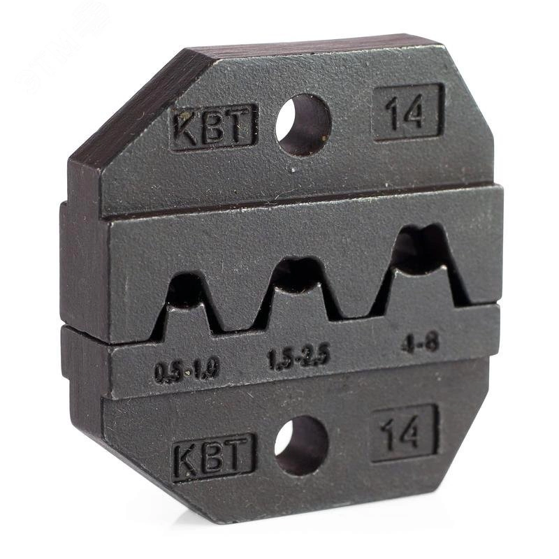 Используется совместно с пресс-клещами CTB-14, СТА-14, CTK-14. Применяется для опрессовки неизолированных разъемов и наконечников (автоклемм) под двойной обжим. Типы наконечников - РП-М, РП-П. Сечения проводов - 0.5/0.75/1.0/1.5/2.5/4/6 мм?. Тип матрицы — трехпозиционная. Профиль обжима — лепестковый, двухконтурный.