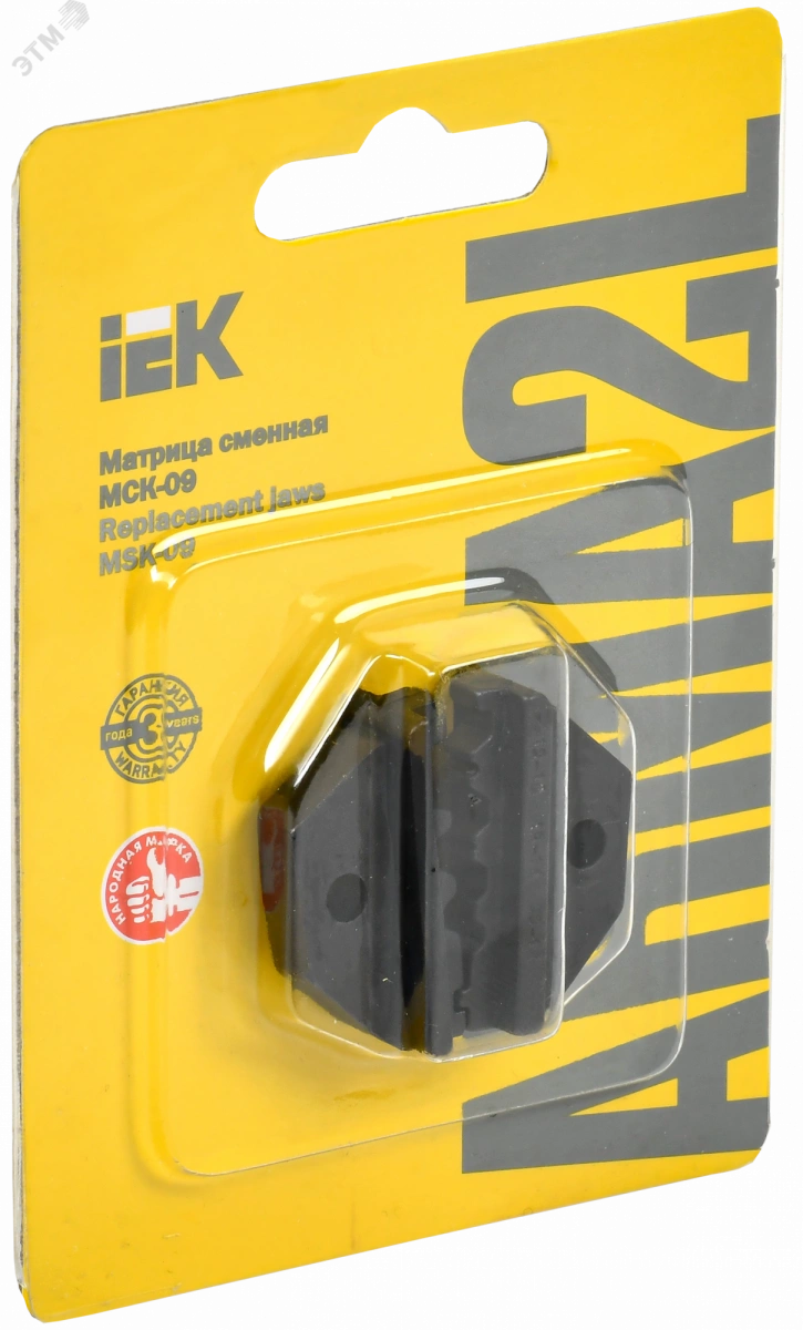 Матрица сменная типа МСК серии ARMA2L 3 предназначена для опрессовки неизолированных наконечников и гильз Количество гнёзд для обжима в губках - 3. Профиль обжима - клиновидный с зубьями.