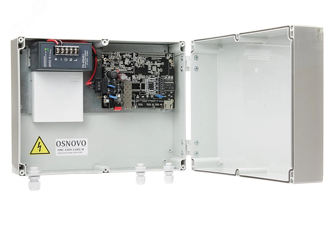 OMC-1000-11HX/W Уличный медиаконвертер Gigabit Ethernet с поддержкой PoE. Порты - 1 x GE (10/100/1000Base-T) с PoE (до 30W), 1 x GE SFP (1000Base-X). Встроенная грозозащита. Соответствует стандартам PoE IEEE 802.3af/at. Автоматическое определение PoE устройств. Питание AC195-265V (36W). Размеры (ШхВхГ) - 300x230x111мм. Рабочая температура -40…+50°С.
