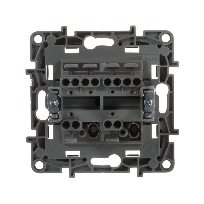 • Механизм нового поколения Etika: подключение кабеля с помощью безвинтовых зажимов (кроме промежуточного переключателя и 3-клавишного выключателя)