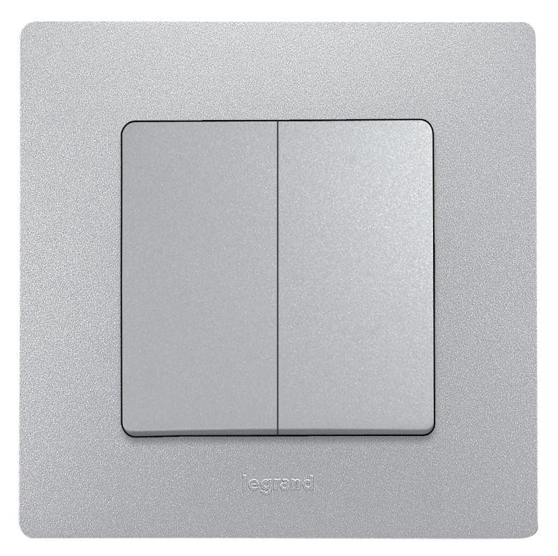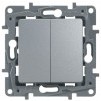 Представляет собой механизм переключателя с двумя клавишами. Цвета "алюминий". Изготовлен из пластика. Монтируется под штукатурку.