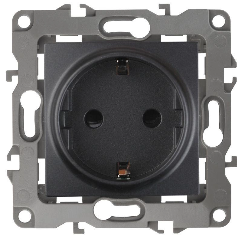 Механизм розетки 1-м СП Эра12 12-2102-05 16А IP20 16AX 250В 2P+E Schuko защ. шторки антрацит Эра Б0014691