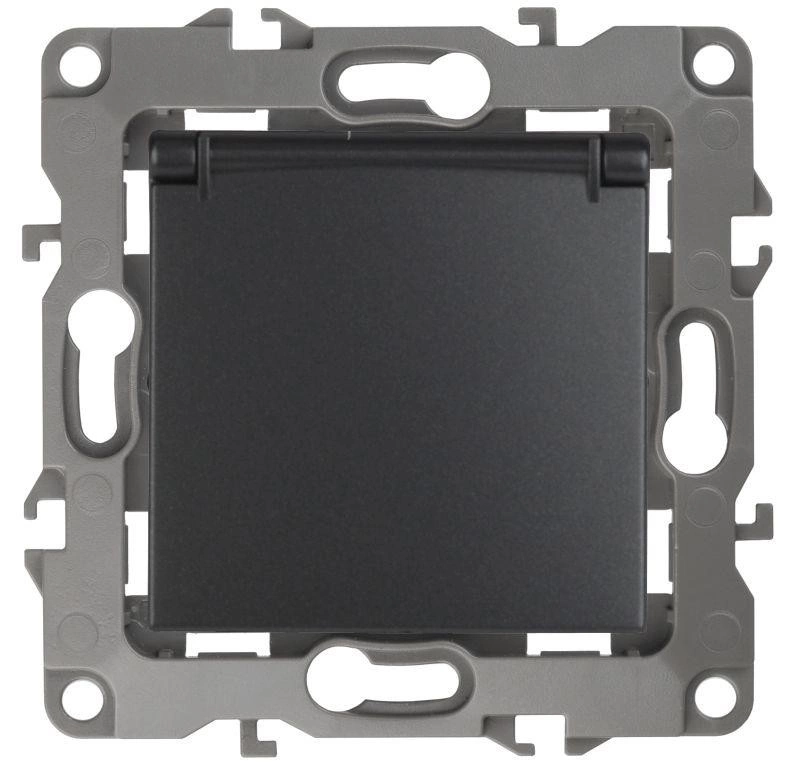 Механизм розетки 1-м СП Эра12 12-2103-05 16А IP20 16AX 250В 2P+E Schuko защ. шторки с крышкой антрацит Эра Б0014697