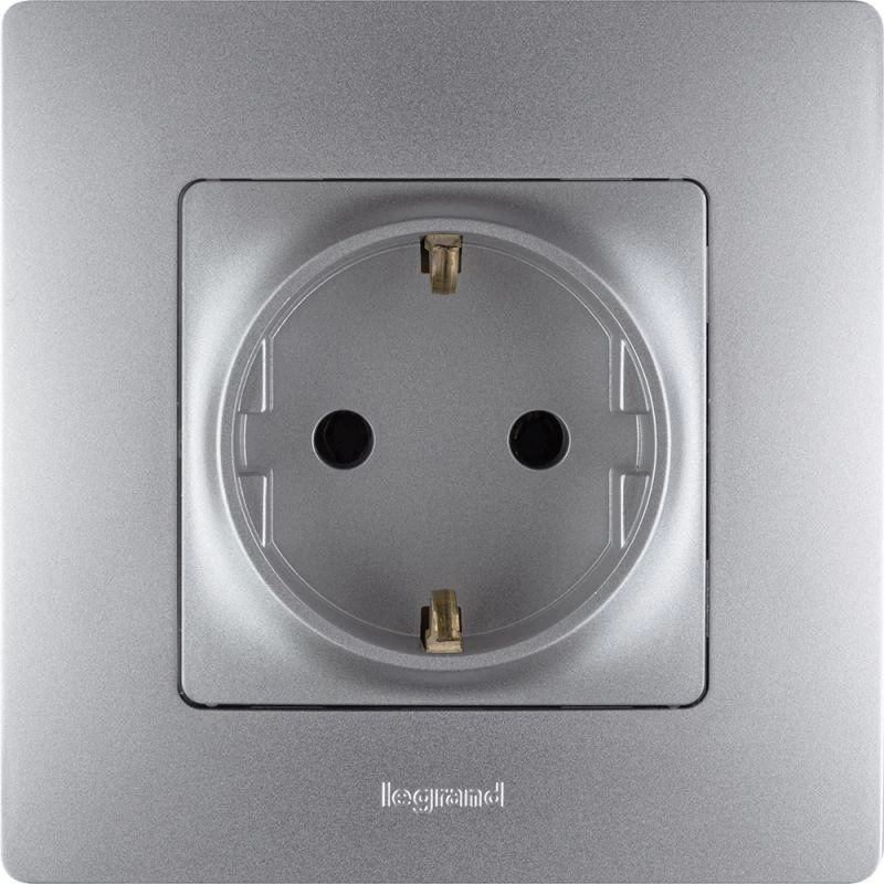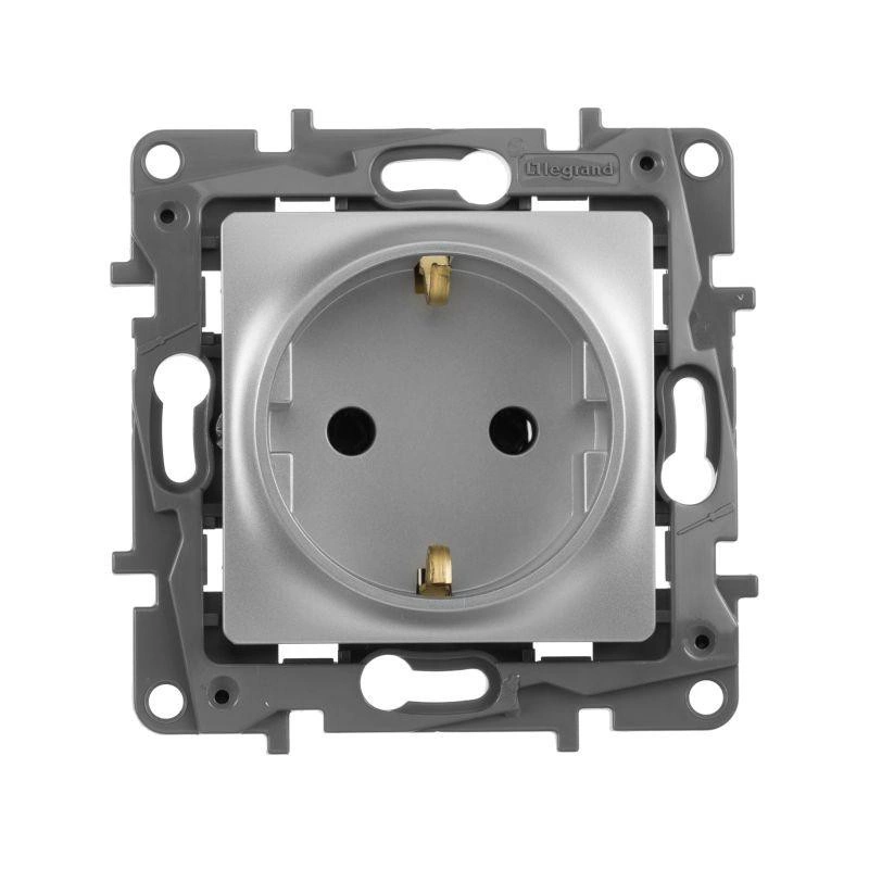Механизм розетки 1-м СП Etika 16А IP20 250В 2P+E с заземл. немецк. стандарт винт. клеммы алюм. Leg 672421