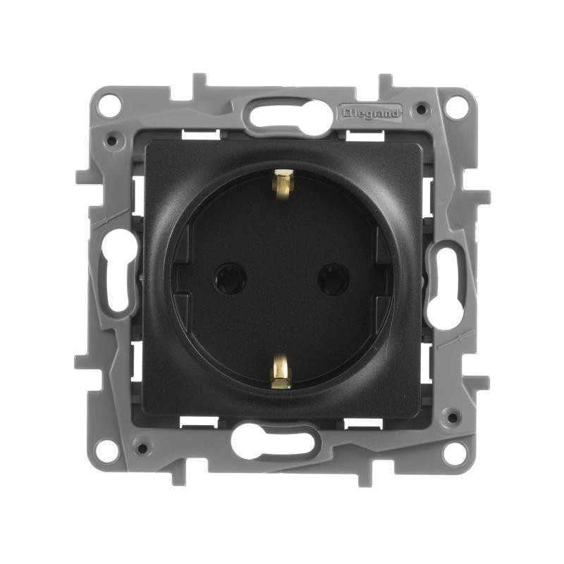 Механизм розетки 1-м СП Etika 16А IP20 250В 2P+E с заземл. немецк. стандарт винт. клеммы антрацит Leg 672621