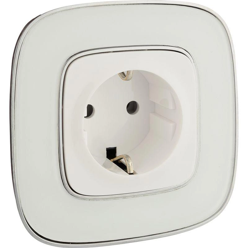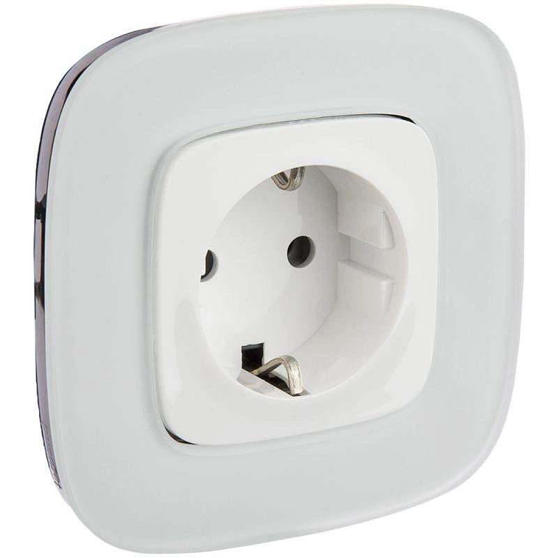 Представляет собой розетку из пластика, с лицевой панелью белого цвета, скрытой установки, монтируемый под штукатурку, на глубине не менее 40 мм. Защитные шторки не предусмотрены.