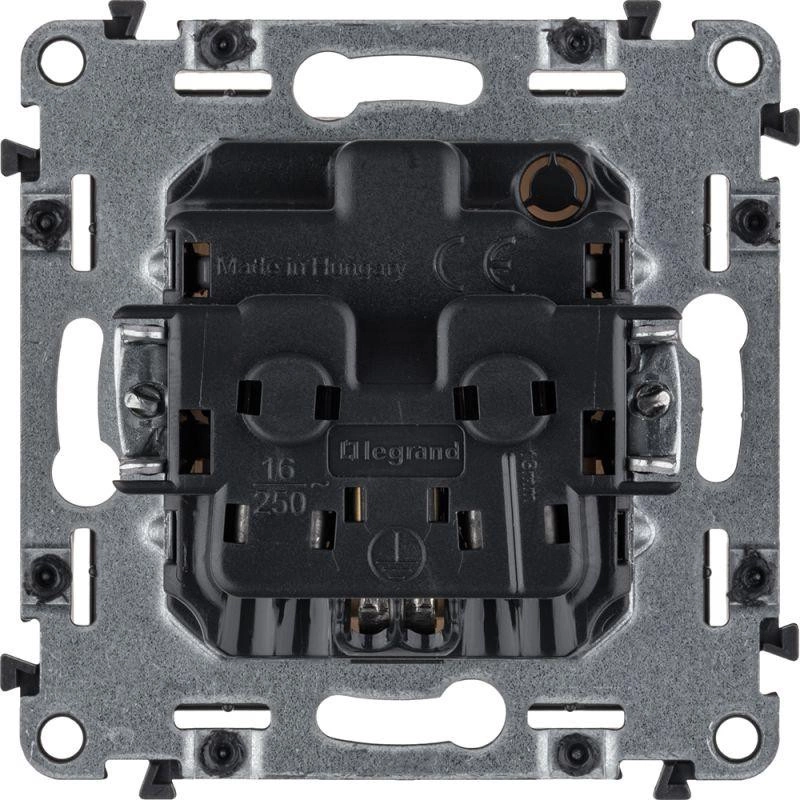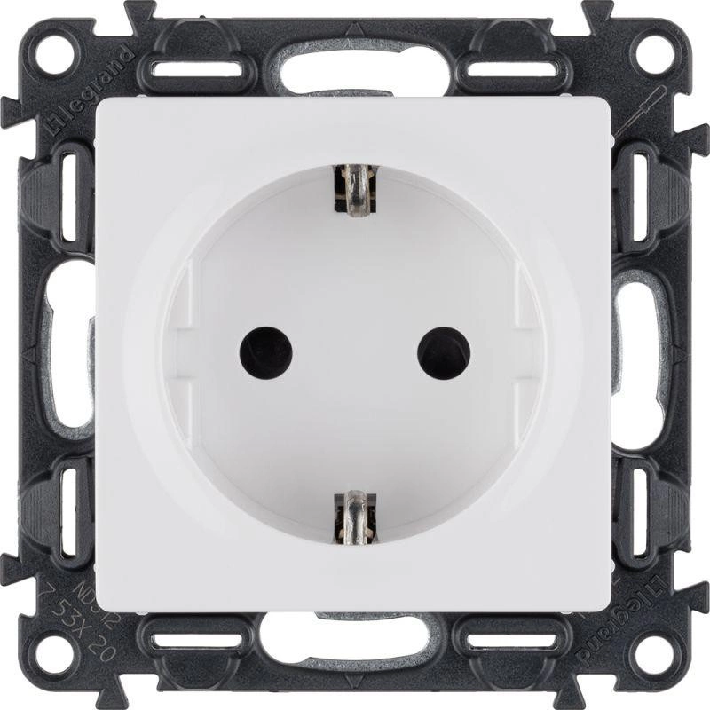 Механизм розетки Valena Life 16А 250В 2К+З защ. шторки безвинт. зажимы с лицевой панелью бел. Leg 753420 – электроустановочный механизм.