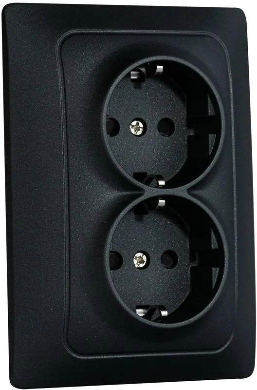 Механизм розетки 2-местн. с/з с з/ш СП Bravo 16А IP20 250В графит GUSI С10Р6-010