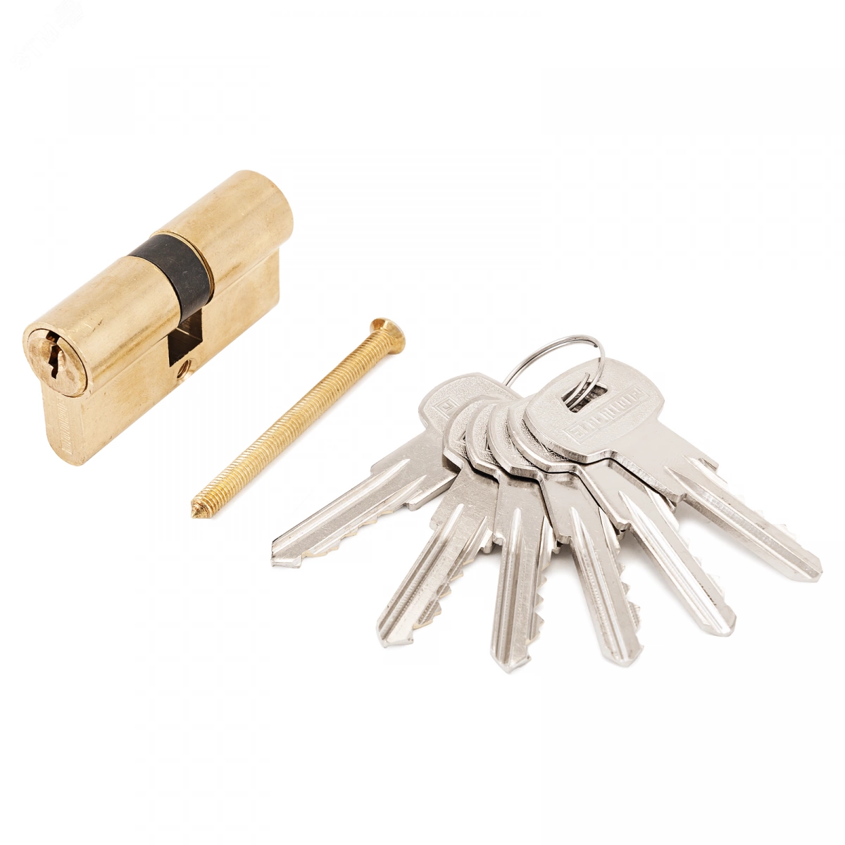 Механизм цилиндровый для врезных замков. Европрофиль. Английский ключ. Материал корпуса и ключей – латунь. Ключ-ключ. Механизм защищен стержнем от высверливания. Выступающий на 30 градусов из плоскости механизма кулачок защищает цилиндр от выбивания из двери. Длина механизма - 60мм (25х10х25).