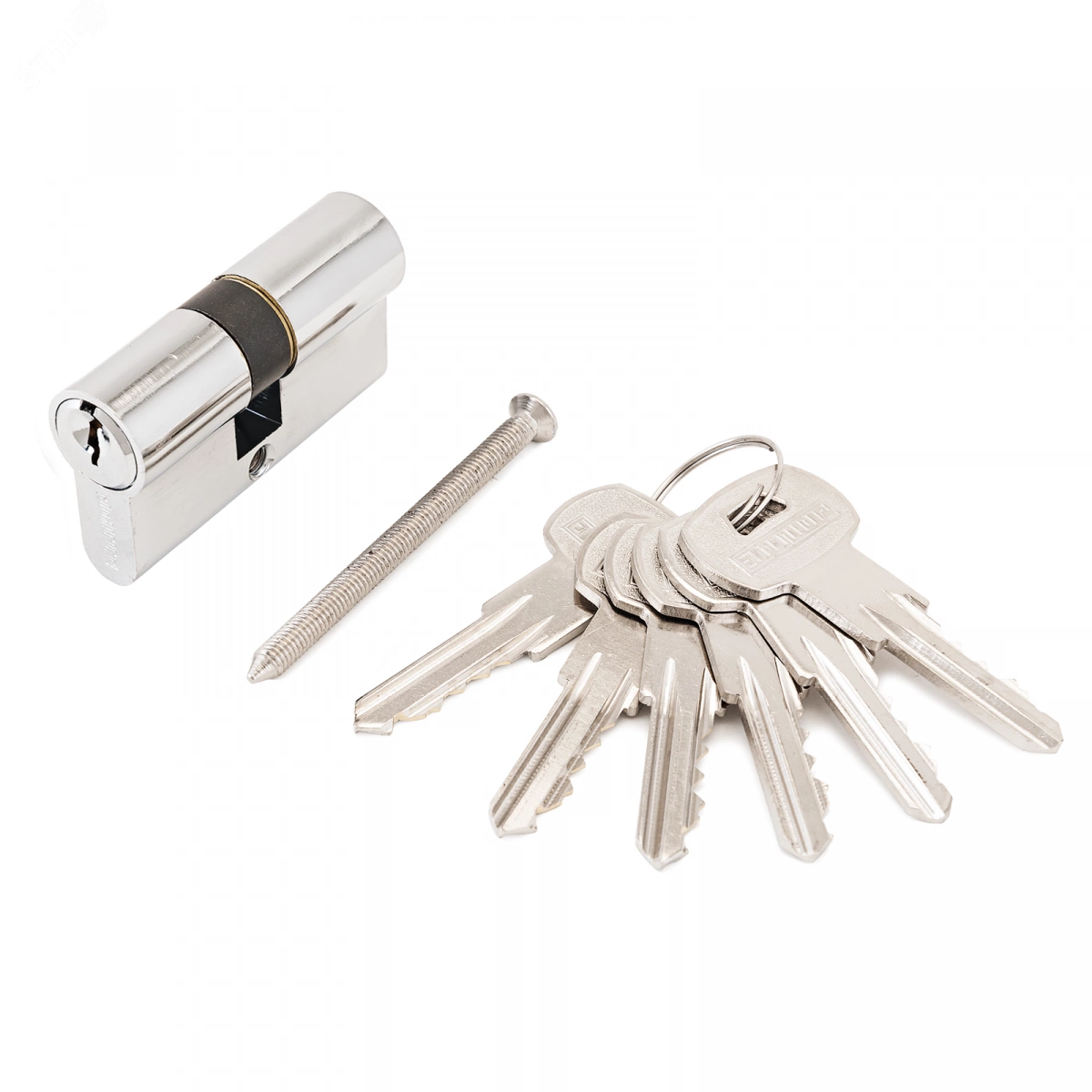 Механизм цилиндровый для врезных замков. Европрофиль. 6 английских ключей. Материал корпуса и ключей – латунь. Ключ-ключ. Механизм защищен стержнем от высверливания. Выступающий на 30 градусов из плоскости механизма кулачок защищает цилиндр от выбивания из двери. Длина механизма - 60мм (25х10х25).