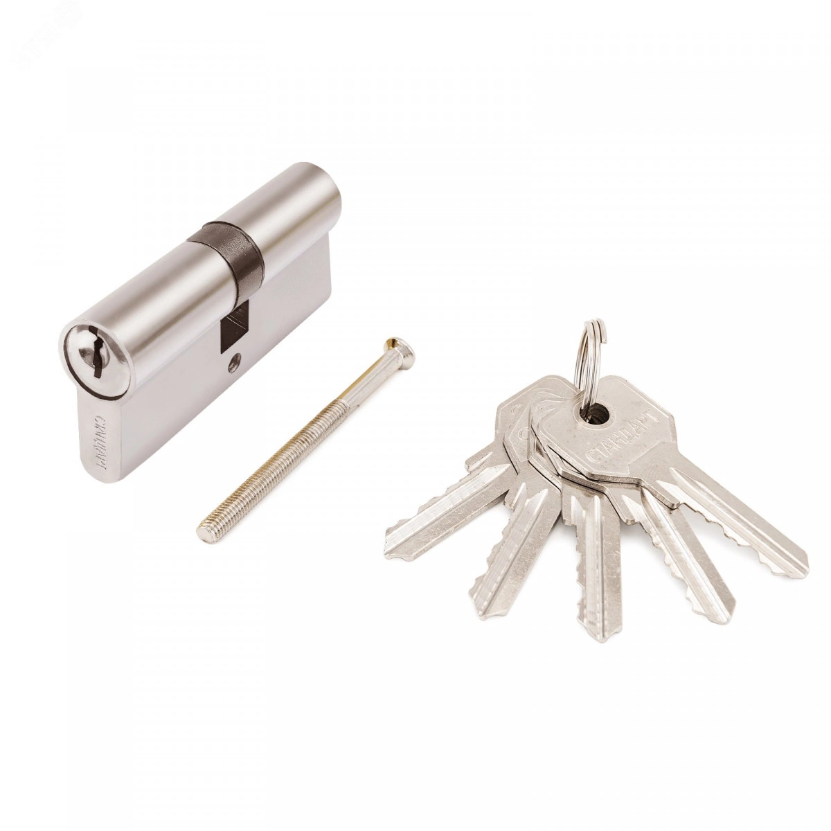 Механизм цилиндровый для врезных замков. Европрофиль. Английский ключ. Материал цилиндра - цинковый сплав. Ключ-ключ. Выступающий на 30 градусов из плоскости механизма кулачок защищает цилиндр от выбивания из двери. Длина механизма - 80(30x10x40)мм.