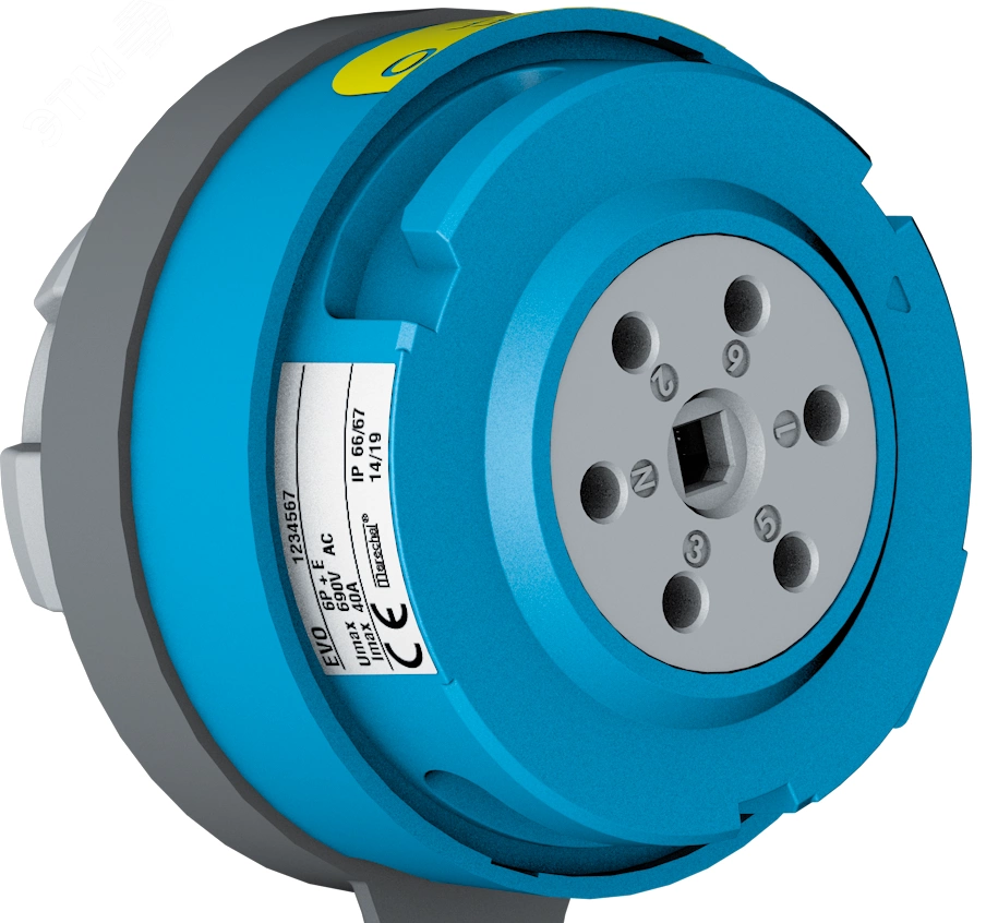 Механизм вилки с интегрированным выключателем 40А/-480V/6P+E IP66/67 EVO, материал корпуса усилен стекловолокном, цвет изделия синий