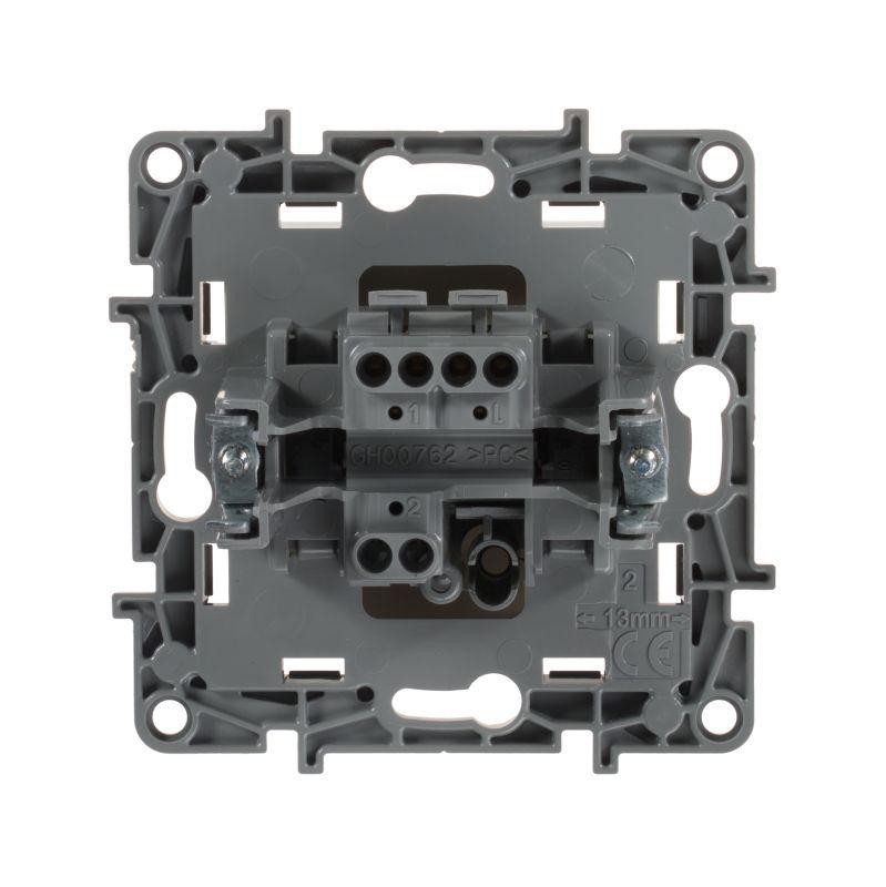 Представляет собой механизм выключателя с одной клавишей. Цвета слоновой кости. Изготовлен из пластика. Монтируется под штукатурку.