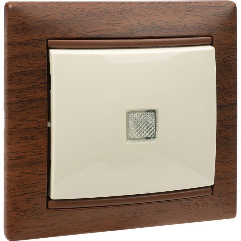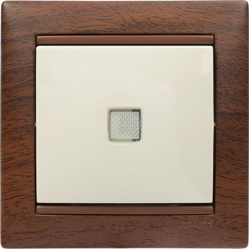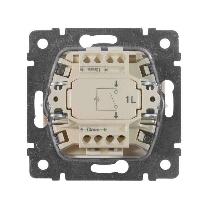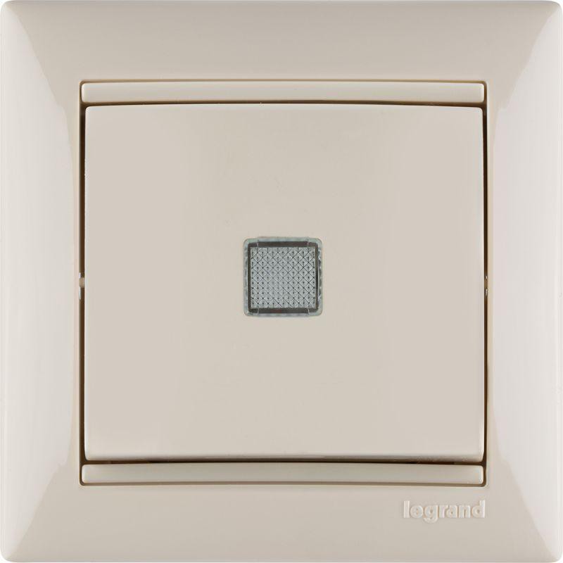 Представляет собой механизм выключателя с одной клавишей. Цвета слоновой кости. Предусмотрена световая индикация режима вкл./выкл. Изготовлен из пластика. Монтируется под штукатурку.