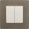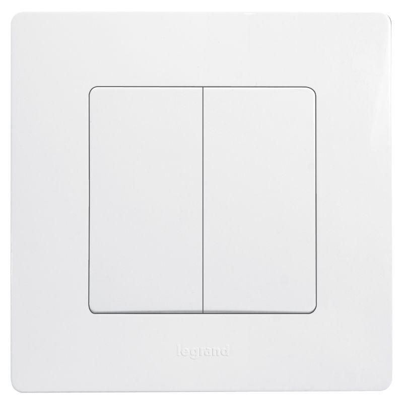 Представляет собой механизм выключателя с двумя клавишами. Белого цвета. Изготовлен из пластика. Монтируется под штукатурку.
