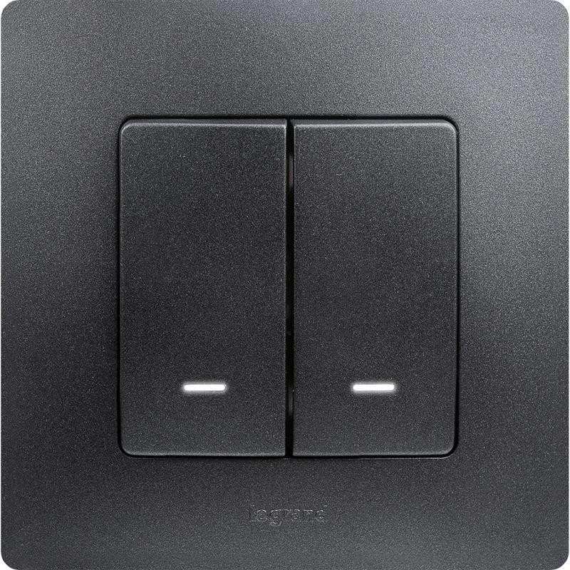 Механизм выключателя 2-кл. СП Etika 10А IP20 250В 10AX с подсветкой / индикацией авт. зажимы антрацит Leg 672604