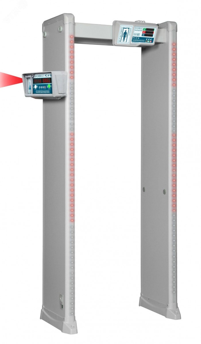 Металлодтектор БЛОКПОСТ РС И 18 с бесконтактным, высокоточным пирометром. Данная модель металлодетектора предназначена не только для досмотра посетителей и выявления, запрещенных к проносу металлических изделий, но и для измерения температуры тела входящего в рамку человека в потоковом режиме с выдачей сигнала тревоги в случае превышения установленного предельного значения. Сигналы наличия металлических предметов и превышения температуры могут быть различными по тональности и громкости, кроме того различны и световые сигналы. Служба безопасности без труда определит, какой из показателей превышен.