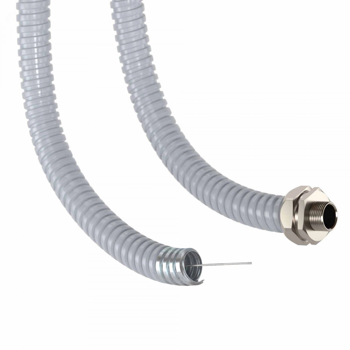 Металлорукав DN 20мм в герметичной ПВХ изоляции, Dвн 20,5 мм, Dнар 25,5, с протяжкой, 50 м, цвет серый