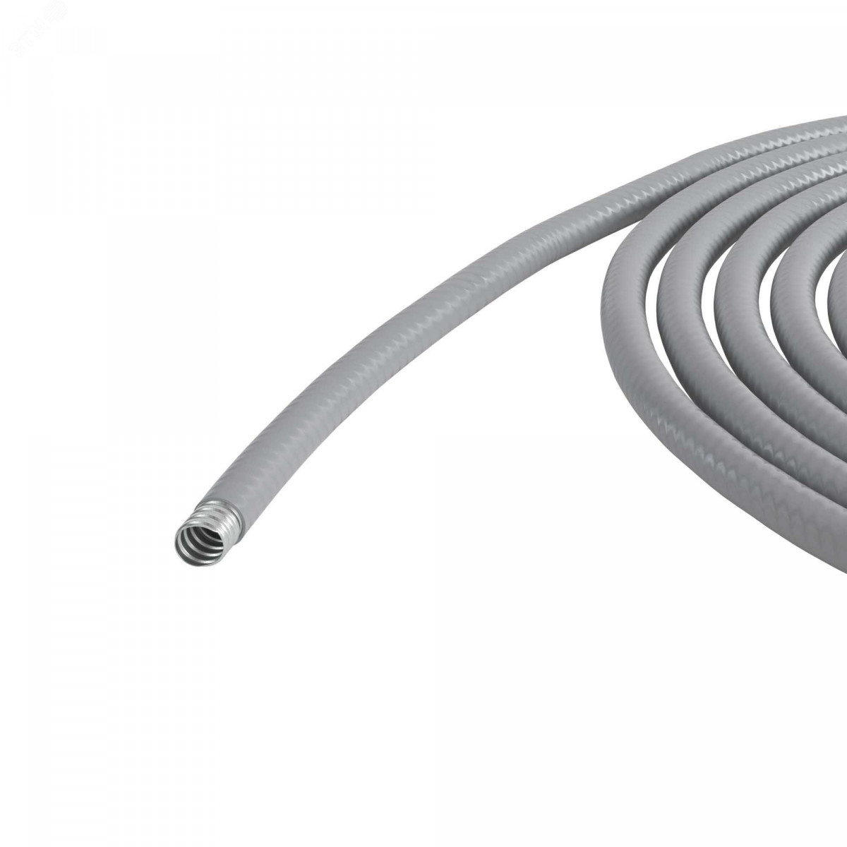 Металлорукав DN 26мм в гладкой ПВХ изоляции D внутренний 26.5 мм D наружный 34.0.IP66 25 м цвет серый