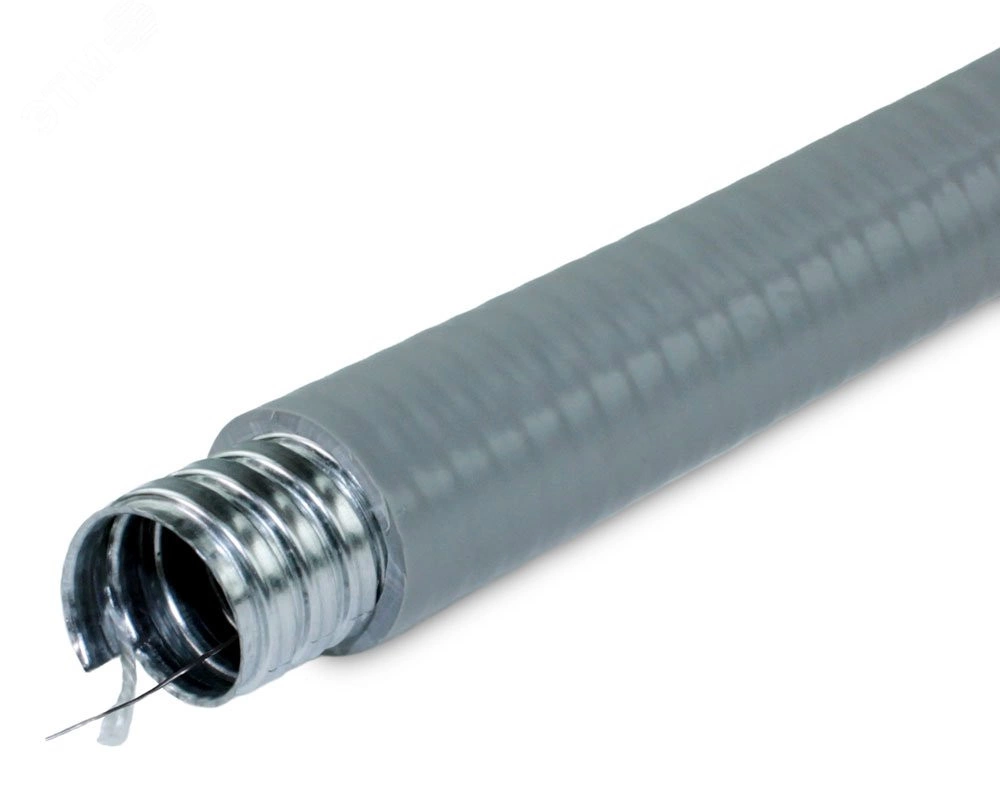 Металлорукав в ПВХ изоляции МПГ нг толстостенный 15 (50 м/уп.) серый с протяжкой ГОФРОМАТИК