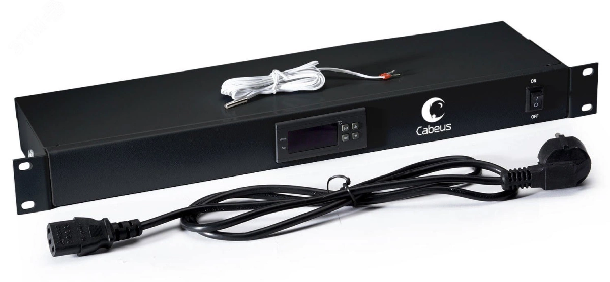 Микропроцессорная контрольная панель предназначена для подключения 2-х вентиляторов и поддержания температуры в телекоммуникационном шкафу на заданном уровне. Состоит из стального корпуса с кронштейнами для крепления на направляющих 19 дюймовых шкафов. С лицевой стороны имеется кнопка включения/выключения панели и терморегулятор. С задней стороны имеется разъем IEC-60320 C14 для подключения шнура питания панели, разъем для подключения температурного датчика и 2 разъема IEC-60320 C13 для подключения вентиляторов. Питание модуля осуществляется подключением его к сети напряжением 220В с помощью шнура из комплекта поставки Schuko CEE 7/7-С13, длиной 1,5 м. Покрытие корпуса выполнено ударопрочной порошковой краской черного цвета RAL 9004.
