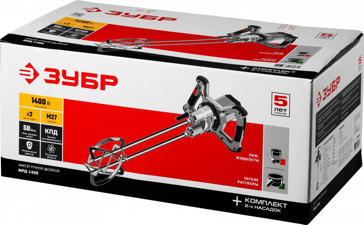 Миксер строительный, двойной, 1400 Вт, 0-520 об/мин
