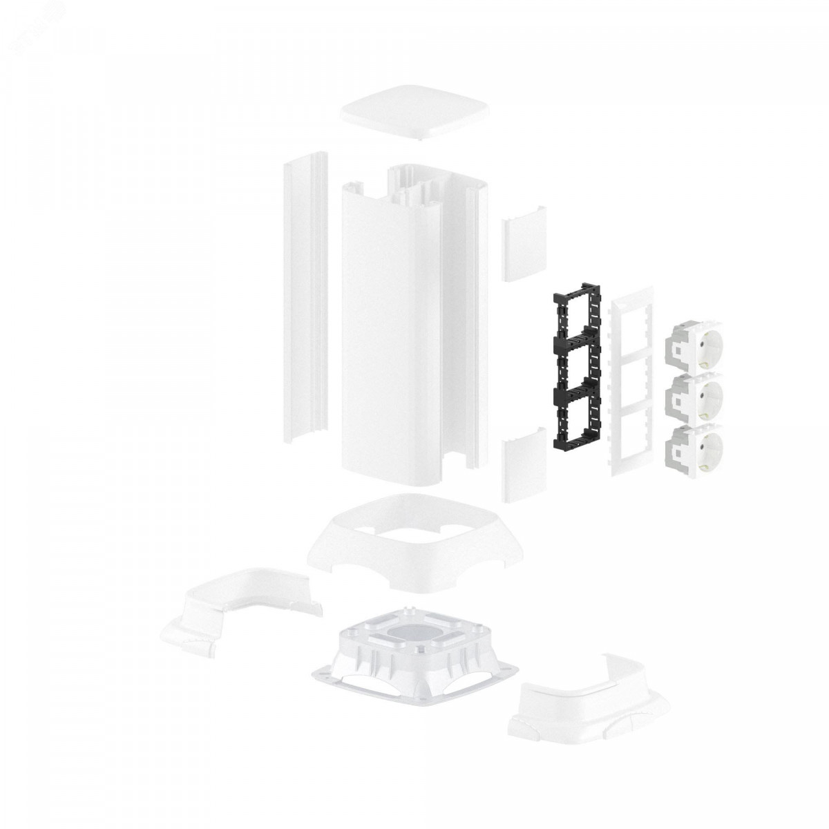 Колонна высотой 0,35 м. Назначение - организация рабочих мест вдали от стен. Условия монтажа - колонна крепится к полу в 4 точках, подвод кабелей с помощью гофрированных труб или в напольном кабель-канале ДКС, колонны рекомендуется заземлять, монтаж ЭУИ осуществляется при помощи каркасов и рамок, которые используются в коробах 'In-liner Aero', 'In-liner Front'. Характеристики - материал стойки и крышек - алюминий, материал прочих комплектующих - сталь, полипропилен, АБС-пластик, отсеки колонны можно разделить по всей длине на 2 или 3 части при помощи пластикового разделителя (код 01415), можно установить ЭУИ серии 'Avanti', 'Viva' и 45х45 мм с помощью каркасов и рамок, ЭУИ монтируются с 2-х сторон, максимально возможно поставить 8 модулей ЭУИ с каждой стороны - итого 16 модулей. Цвет - белый RAL 9016.