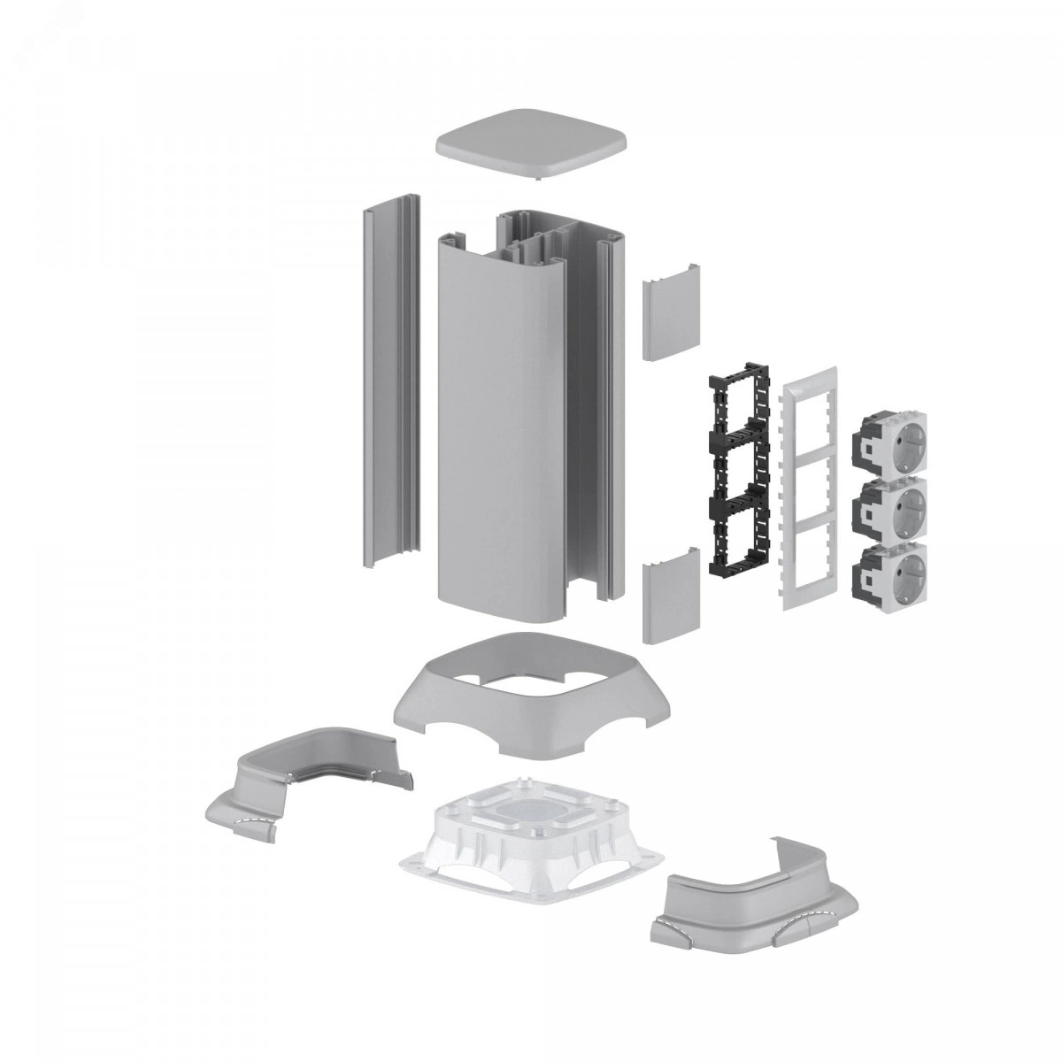 Колонна высотой 0,35 м. Назначение - организация рабочих мест вдали от стен. Условия монтажа - колонна крепится к полу в 4 точках, подвод кабелей с помощью гофрированных труб или в напольном кабель-канале ДКС, колонны рекомендуется заземлять, монтаж ЭУИ осуществляется при помощи каркасов и рамок, которые используются в коробах 'In-liner Aero', 'In-liner Front'. Характеристики - материал стойки и крышек - алюминий, материал прочих комплектующих - сталь, полипропилен, АБС-пластик, отсеки колонны можно разделить по всей длине на 2 или 3 части при помощи пластикового разделителя (код 01415), можно установить ЭУИ серии 'Avanti', 'Viva' и 45х45 мм с помощью каркасов и рамок, ЭУИ монтируются с 2-х сторон, максимально возможно поставить 8 модулей ЭУИ с каждой стороны - итого 16 модулей. Цвет - темно-серебристый RAL 9006