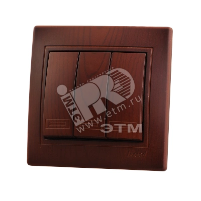 Выключатель одноклавишный, с подсветкой, 10АХ, механизм, сосна