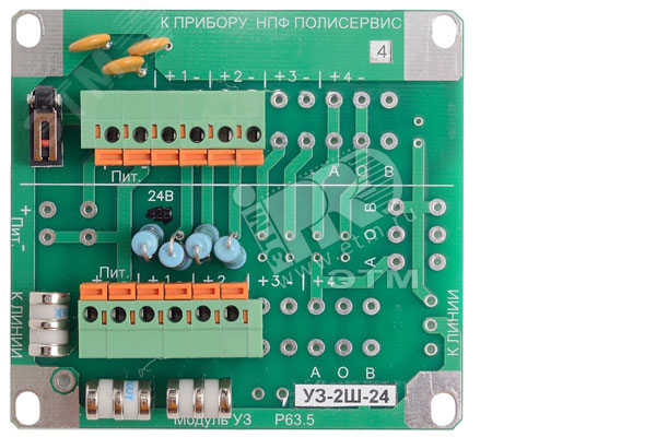 Модуль УЗ-2Ш-24 грозозащита предназначен для защиты линий связи и линий питания оборудования, установленного на открытой местности, от импульсных перенапряжений, возникающих в результате воздействия грозовых, коммутационных, электростатических разрядов. Является пассивным элементом цепи, не потребляет питания и не вносит искажений в передаваемый сигнал. Выпускается в виде бескорпусного модуля для установки в специальный корпус или монтажный шкаф. Для использования на открытой местности предусмотрены герметичные корпуса, выполненные из поликарбоната или алюминия, с гермовводами и степенью защиты оболочки IP65. Для использования в помещении предусмотрен металлический корпус со степенью защиты IP20.