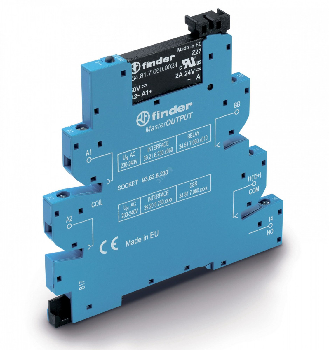 Модуль интерфейсный (сборка 34.81.7.005.9024 + 93.62.7.024), твердотельное реле, серия MasterOUTPUT, выход 6A (24В DC), питание 6В DC, категория защиты IP20, винтовые клеммы