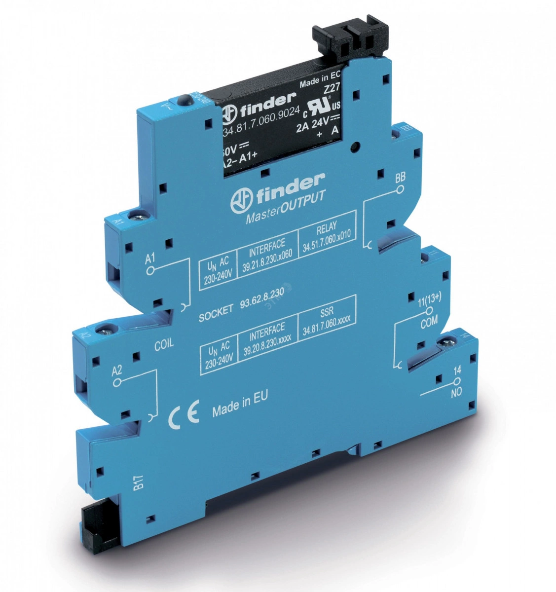 Модуль интерфейсный (сборка 34.81.7.060.9024 + 93.62.8.230), твердотельное реле, серия MasterOUTPUT, выход 6A (24В DC), питание 230-240В AC, категория защиты IP20, винтовые клеммы