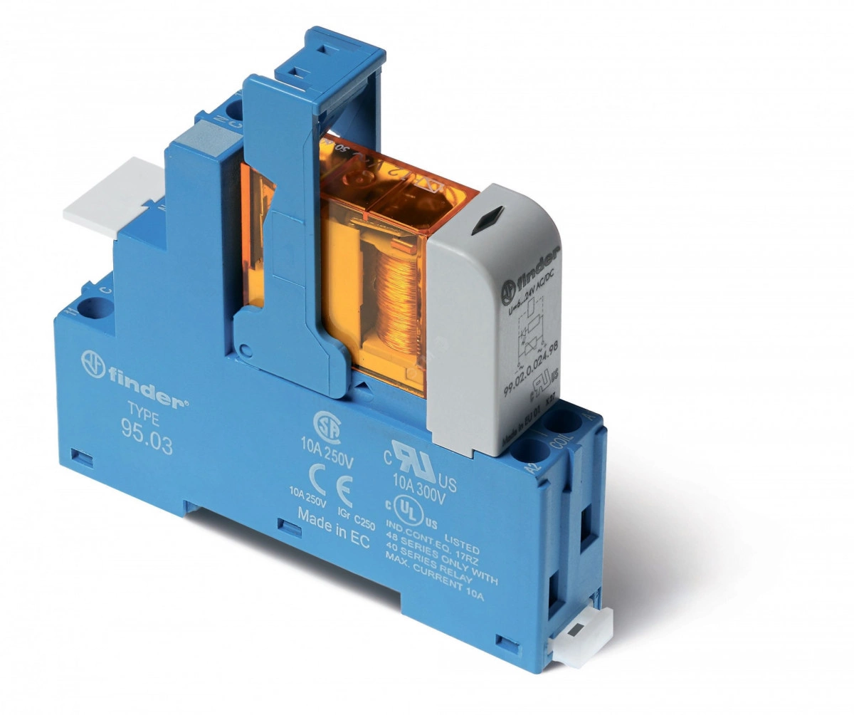 Модуль интерфейсный (сборка 40.31.8.120.0000 + 99.02.0.230.98 + 95.03SMA), электромеханическое реле, 1CO 10A, контакты AgNi, питание 120В AC, категория защиты IP20, винтовые клеммы, металлическая клипса, LED + варистор