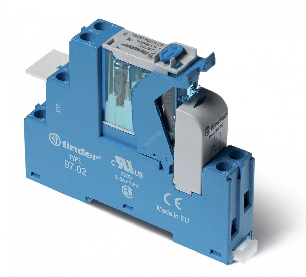 Модуль интерфейсный (сборка 46.52.8.230.0040 + 99.02.0.230.98 + 97.02SPA), электромеханическое реле, 2CO 8A, контакты AgNi, питание 230В AC, категория защиты IP20, винтовые клеммы, пластиковая клипса, LED + варистор, кнопка тест + мех.индикатор