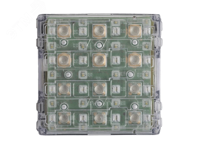 Электронный модуль в корпусе из технополимера с 12-кнопочной буквенно-цифровой клавиатурой и двойной синей или белой подсветкой. Регулировка цвета и яркости светодиодов с основных модулей. Кнопки от 0 до 9 для набора кода и две кнопки основных функций - вызова абонента и подтверждения кода доступа. Дополняется фронтальной накладкой кодонаборного модуля. В сочетании с соответствующей фронтальной накладкой обеспечивает класс защиты от воды и пыли IP54.