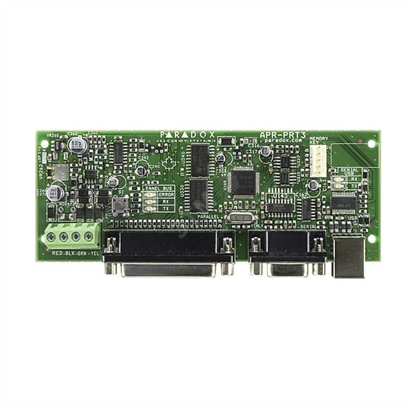 Обновление ''прошивки'' на месте с ПК через CV4USB, используя ПО InField. Поддержка протоколов ASCII и C-BUS 16 виртуальных входов для запуска действия в контрольной панели EVO на основании события, полученного из периферийной системы по протоколу ASCII или C-BUS 30 виртуальных PGM выходов для запуска действия в периферийной системе по протоколу ASCII или C-BUS на основании события, полученного из контрольной панели EVO. Подключение к ПК через USB-порт. Возможность использовать как интерфейс между контрольной панелью EVO и периферийной системой (например, для устройств домашней автоматики). Автоматическая/ручная распечатка событий на принтере или передача в ПК. Подключение к принтеру через параллельный или последовательный порт. Модуль может быть присвоен к одной или несколькими подсистемами Буфер памяти на 2048 событий.