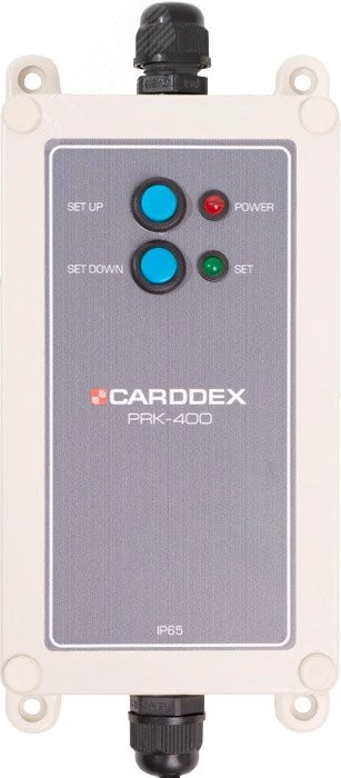 Приемник Carddex PRK-400 предназначен для обеспечения возможности производить подъем и опускание стрелы шлагбаума по сигналу с радиопультов. Объем памяти позволяет хранить 400 уникальных кодов, что позволяет запрограммировать до 200 двухканальных радио-пультов.