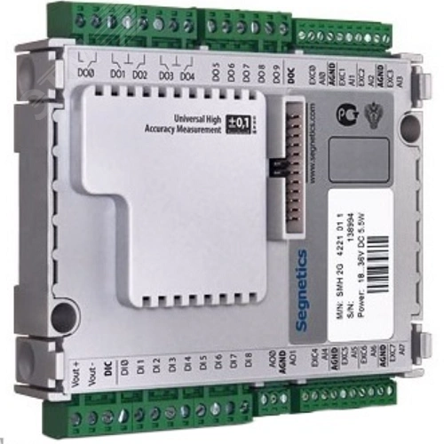 Модуль MC расширяет ресурсы I/O и возможности монтажа контроллеров SMH2G и SMH4. Модуль Segnetics MC соединятся с контроллером либо при помощи шлейфового кабеля, либо непосредственно 'разъем в разъем'. На корпусе модуля есть защелки, благодаря которым он может монтироваться на DIN-рейку. Благодаря этому Вы можете подобрать наиболее подходящий, для каждого конкретного случая, вариант монтажа - модуль вместе с контроллером на дверце щита управления, модуль на DIN-рейке, а контроллер на дверце щита или модуль и контроллер вместе на DIN-рейке. Отличительной особенностью модуля Segnetics MC является наличие универсальных аналоговых входов высокой точности. Модуль МС поддерживает измерения 24 битным АЦП (до 8 каналов). Благодаря технологии UHAM, к измерительным входам можно подключать разнообразные датчики с исключительно программным конфигурированием.